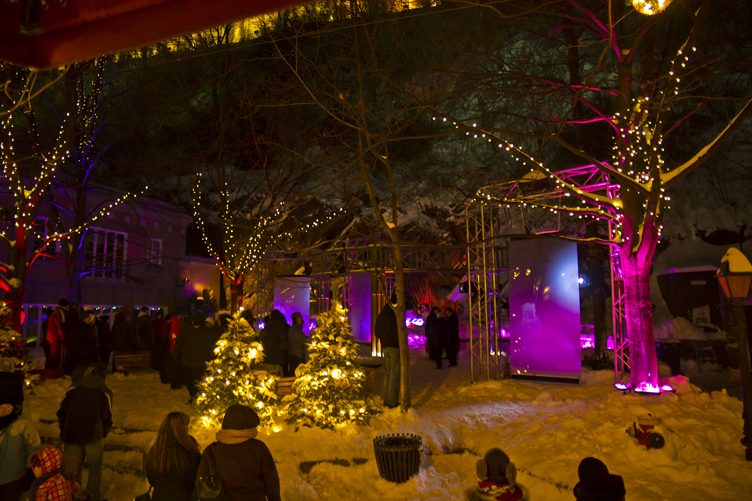 Dans le cadre de QuébecAdabra!, la coopérative du Quartier Petit Champlain a confié à Interférences la conception d'une installation interactive pour son Parcours lumières mettant en valeur (et en lumière!) différents lieux de la Ville de Québec, dont le Parc Félix-Leclerc.