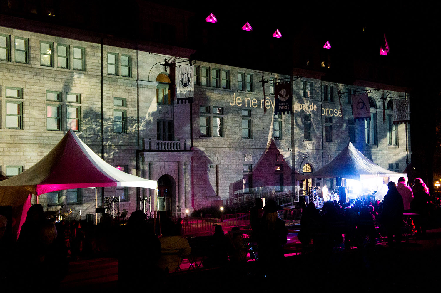 Dans le cadre de la sixième édition du festival Québec en toutes lettres et de l'inauguration de la Maison de la littérature de Québec, Interférences a été mandaté par Nancy Bernier et Bernard White d'Azur Créations pour assurer la conception et l'intégration vidéo du Parcour volatil.